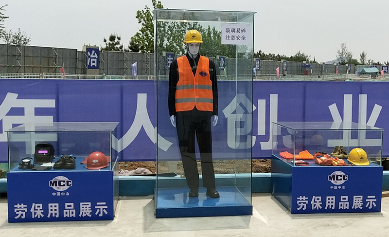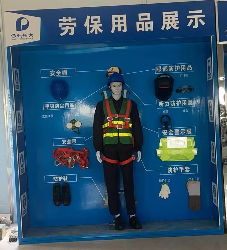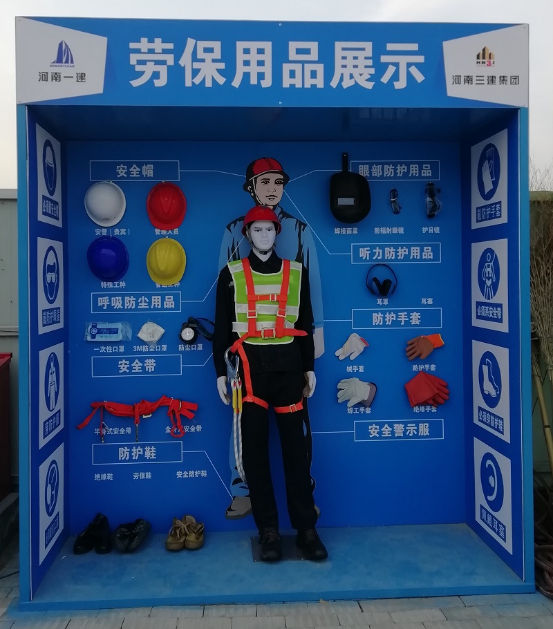 1、防護用品及著裝展示包含各類防護用品,一般尺寸為1000*1000*1000mm和1000*1000*2000mm,可根據現場實際尺寸調節。